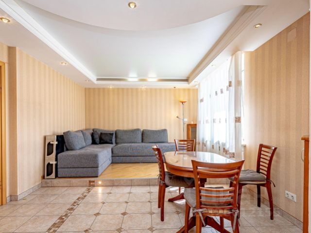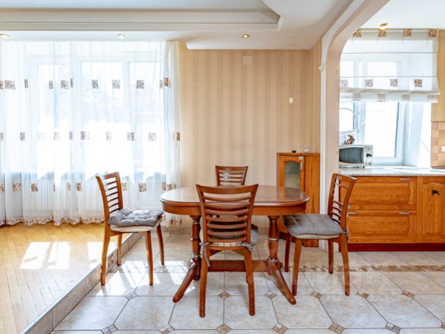 В отделке интерьера квартиры использованы натуральные материалы, на полу массив дерева, укомплектована бытовой техникой европейского производства и всей необходимой мебелью.