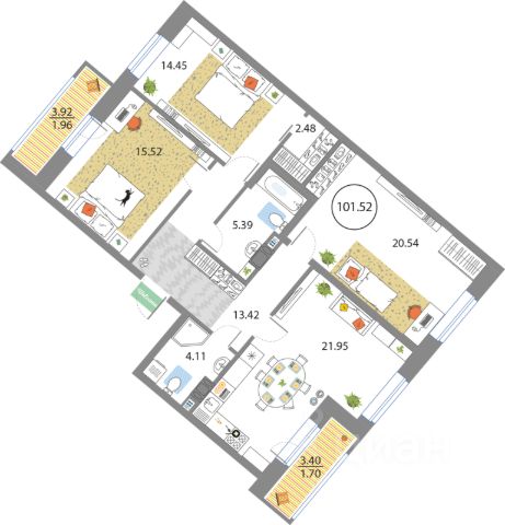 Продаётся 4-комнатная квартира в сданном доме (Дом 54 (Корпус 2)), срок сдачи: III-кв. 2022, общей площадью 101.52 кв.м., на 5 этаже. О квартале В 2020-м году мы запускаем новый проект - жилой квартал Modum, который выведет ваши представления о комфорте на новый уровень. Вдохновляясь легендарным советским архитектором Андреем Буровым, мы соединили практичность постконструктивизма и красоту античной эстетики. Разнообразные планировки квартир обладают всеми преимуществами бизнес-класса и удовлетворят даже самый притязательный вкус. Только представьте - вы возвращаетесь домой, проходя через мраморное лобби, поднимаетесь в квартиру с огромными панорамными окнами, высокими потолками, просторными комнатами и личным кабинетом. Что вы захотите сделать дальше? Может быть, поплавать в бассейне и погреться в сауне? Погулять с ребенком на детской площадке, спроектированной лучшими дизайнерами? А может, проехать по велодорожке через парк? Выбор только за вами! Modum будет находиться в Приморском районе. С одной стороны, близость Юнтоловского заказника обеспечит его жителям свежий воздух и тишину, а с другой - удобное расположение позволит быстро добраться в любую точку Санкт-Петербурга.