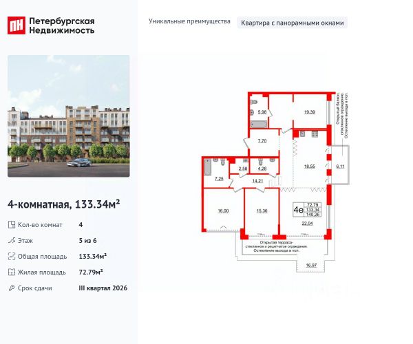На каждом этаже всего одна квартира, а в парадной всего — четыре. Линия тихая, тупиковая, без транзитного трафика.