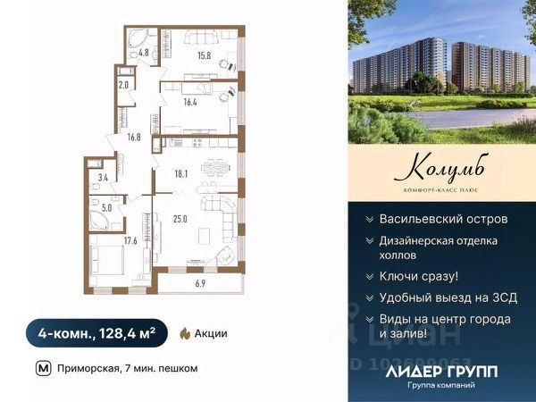 • ✓ Ищете объявления о продаже 4-комнатных квартир в районе Василеостровский в Санкт-Петербурге?