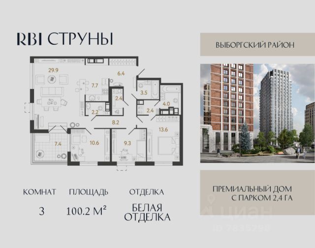 Дом сдан. Ключи сразу. Ипотека с господдержкой. Продается большая четырехкомнатная квартира в жилом комплексе "Прагма City", расположенном в Выборгском районе Санкт-Петербурга. Общая площадь 128.2 кв.м, жилая площадь 74.2 кв.м. В квартире много света, окна выходят на три стороны, в том числе на Шуваловский парк и во двор жилого комплекса. Пространство квартиры спроектировано таким образом, чтобы спальни находились в одной ее части, а место досуга и кухня в другой. В одной из комнат предусмотрена гардеробная, две другие объединены одним балконом. Кухню можно объединить с соседней комнатой, получив таким образом большую гостиную-столовую. Отличительной чертой квартиры является наличие окна в ванной комнате. Жилой комплекс "Прагма city" построен с уважением к будущим жильцам. Комплекс имеет закрытую охраняемую территорию. По всей территории ведется круглосуточное видеонаблюдение. Во дворе дома расположены детские и спортивные площадки, на первых этажах комплекса будут располагаться продуктовые магазины, кофейни, салоны красоты. ЖК "Прагма city" находится в живописном зеленом районе Санкт-Петербурга. В двух шагах расположен Шуваловский парк, который является исторической достопримечательностью и популярным местом отдыха горожан. Многочисленные пруды, обилие зеленой растительности вокруг и оригинальные архитектурные формы ЖК позволят жителям комплекса приятно проводить время всей семьей. Развитая инфраструктура района, большое количество разнообразных магазинов и развлекательных центров, удобные транспортные развязки делают проживание в новом жилом комплексе комфортным и уютным.