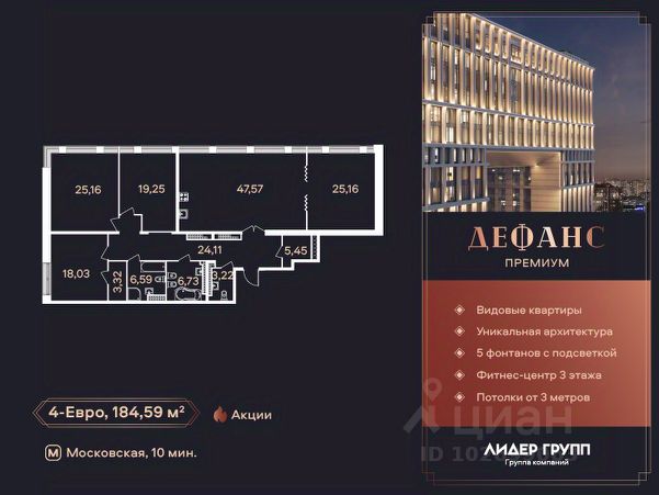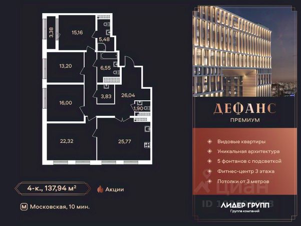 Предлагается к продаже семейная резиденция площадью 159,37 кв.м.Квартиру отличают высокие потолки от 2,9 до 3,8 м, а также совершенно необычные окна высотой 3,7 м. Такая геометрия крыши и окон наполняет квартиру воздухом и светом, а также дает возможность проектирования 2ого уровня для игровой детской зоны или библиотеки. Квартира строго зонирована на приватную и гостевую часть: кухня-столовая площадью 16,41 кв.м объеденяется с роскошной гостиной площадью 50 кв.м с четырьмя панорамными окнами ориентированными на две стороны и выходом на французский балкон. Приватная часть включает в себя три спальни, две ванные комнаты, две гардеробные и постирочную. Высота потолка 3,8м, большие окна, возможно приобретение машиноместа и дополнительной кладовки в подземном паркинге.