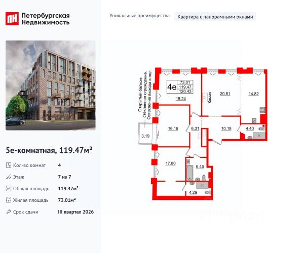 Продаётся 4-комнатная квартира в ЖК "NEVA HAUS" на 9 этаже. Общая площадь составляет 188.50 кв. м. Квартира без отделки. Жилой комплекс "NEVA HAUS" располагается по адресу Санкт-Петербург, Петроградский. NEVA HAUS - элитный жилой комплекс в самой зеленой части Петровского острова, в точке слияния двух рек, напротив Крестовского острова. У жителей появится благоустроенная набережная с пирсом и павильон с необходимыми сервисами и услугами. Потолки до 3,8 м, увеличенные деревянно-алюминиевые окна, современные технические решения, закрытая территория и внутренняя инфраструктура - важные слагаемые качественной жизни в NEVA HAUS. Расположение: • 4 мин на авто до Крестовского острова; • 5 мин на авто до Приморского парка Победы; • 6 мин на авто до станции метро "Крестовский остров"; • 18 мин на авто до ЗСД; • 20 мин на авто до Стрелки В.О. и исторического центра города. NEVA HAUS стал первым элитным жилым комплексом в Санкт-Петербурге, официально получившим статус энергоэффективного, водоэффективного и экологичного объекта по системе GREEN ZOOM. Для удобства жителей, квартира будет подключена к IP-домофонии, на гостевой парковке предусмотрены зарядки для электромобилей. В квартире устроена ниша для размещения кондиционеров, индивидуальные каналы вентиляции, отверстия на фасаде для современных приточно-вытяжных систем, пятиступенчатая очистка воды, коллекторная разводка труб отопления и дерево-алюминиевые окна соответствуют высокому классу жилья. Преимущества: • Высокие потолки, до 3.8м; • Повышенная звукоизоляция между квартирами; • Закрытая охраняемая территория, видеонаблюдение; • Благоустроенная приватная набережная; • Система "Умный дом"; • 5-ти ступенчатая система очистки воды; Успейте приобрести квартиру на выгодных условиях! Чтобы узнать подробности, обращайтесь за консультацией по телефону.