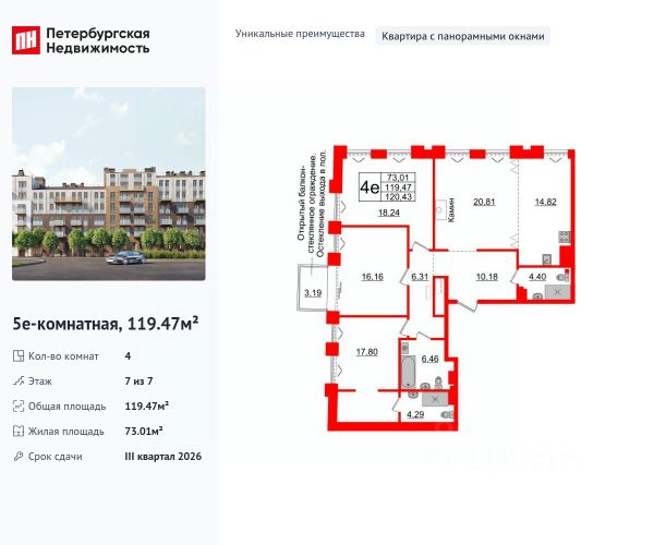 Продается 4-комн. квартира на 19-м этаже в сданном проекте премиум-класса GloraX Premium Василеостровский. Общая площадь лота составляет 100,18 кв. м, из которых 49,46 кв. м отведено под жилую и 20,81 кв. м под кухонную зону. Номер квартиры - 723 Преимущества квартиры: • Пентхаус для большой семьи — просторное, светлое и продуманное до мелочей пространство, где каждый член семьи найдёт свой уголок уюта, а вместе — место для тёплых встреч и совместного времени. • Большая кухня-гостиная — сердце дома, объединяющее функциональность и эстетику. Здесь с лёгкостью разместится вся семья за общим ужином или дружеской беседой, а панорамное остекление наполнит интерьер светом и воздухом. • Гардеробная — стильное и практичное решение для хранения, превращающее повседневные сборы в удовольствие и дарящее порядок в каждом дне. • Три санузла — обеспечивает комфорт, приватность и удобство для всех, избавляя от утренней спешки и создавая ощущение личного пространства для каждого. • Вид на залив — живописная панорама воды, мягкий свет заката и свежий бриз за окном превращают каждый день в маленький отдых у моря. • Этот пентхаус — идеальный дом для большой семьи, где роскошь встречается с теплом, а простор — с безупречным комфортом и видами, вдохновляющими на жизнь в полной мере. GloraX Premium Василеостровский это роскошный видовой комплекс премиум-класса на первой береговой линии Финского залива. Проект уникален по своему опциональному наполнению: вся необходимая для комфортной городской жизни инфраструктура будет в составе самого комплекса. Здесь откроется фитнес-клуб класса премиум, кинотеатр только для резидентов, летом будет работать общая видовая терраса на крыше, откуда откроются потрясающие виды на воду. В GloraX Premium Василеостровский расположится гастрономический кластер - ресторанная улица с видом на Финский залив. В пяти минутах пешком от проекта GloraX строит образовательный кластер. В состав кластера войдет общеобразовательная школа с развивающими пространствами, футбольным полем, большим спортивным стадионом и 2 -мя плавательными бассейнами. Во втором корпусе проекта откроется детский сад с собственной территорией для прогулок. Транспортную доступность обеспечивает близость к ЗСД. Дорога до Дворцовой площади займет 25 минут на автомобиле. Ближайшая остановка общественного транспорта находится в 1 минуте пешком от комплекса. Все квартиры передаются с отделкой White Box. Цена указана при 100% оплате или стандартной ипотеке. Узнайте подробности в Отделе про