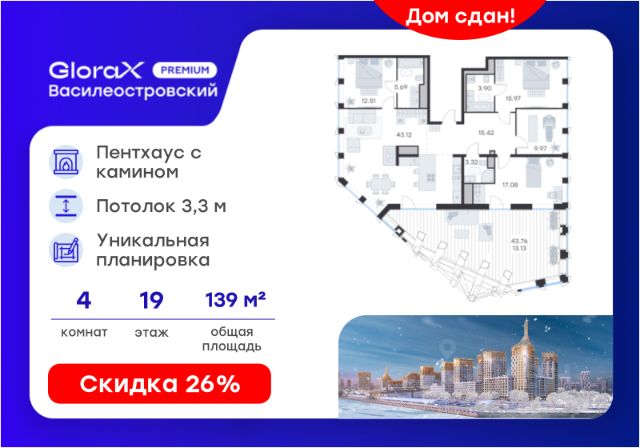 Продается 4-комнатная квартира в ЖК "Морская набережная" на 14 этаже. Общая площадь составляет 118.20 кв. м. Квартира без отделки. Жилой комплекс "Морская набережная" располагается по адресу Санкт-Петербург, Василеостровский. Жилой комплекс "Морская набережная" - проект бизнес-класса на Васильевском острове, расположенный на берегу Финского залива. Этот район гордится большим количеством культурно-исторических объектов, активно участвует в развитии современной культуры. Расположение: • 3 минуты до ЗСД; • 10 минут на автомобиле до станции метро "Приморская"; • 18 минут на автомобиле до стрелки В.О. и исторического центра города. "Морская набережная" - это экологически благополучное место с чистым грунтом и свежим воздухом. Прямо перед домом - благоустроенный сосновый парк. Хвойный массив поднимется вместе со строящимися домами - здесь уже высажено более 1 300 деревьев двухметровой высоты. Выйдя из дома, можно отправиться на прогулку в парк или пройти через двор к набережной у залива. Проект набережной выполняется в духе европейского ландшафтного дизайна: высаживаются лиственные деревья и сосны, поднимается уровень дерна, газоны украшаются злаками и кустарником. Преимущества: • Высокие потолки и широкие окна; • Подземный паркинг с лифтом до Вашего этажа; • Огороженный внутренний двор без машин; • Система "Умный дом" и видеонаблюдение; • Школа и детские сады на внутренней территории ЖК; • Инфраструктура шаговой доступности на первых этажах корпусов; • Продуманная территория для отдыха, игр и спорта. Успейте приобрести квартиру на выгодных условиях! Чтобы узнать подробности, обращайтесь за консультацией по телефону.