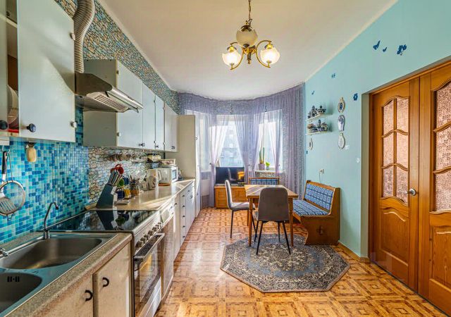 Квартира находится на последнем этаже, в доме 2008г. Постройки (от Строительного Треста), состоит из двух детских комнат (для мальчика и девочки), с мастер-спальни, укомплектованной кухни, отдельной обеденной комнатой-гостиной, тремя сан.узлами (с постирочной, хоз-блоком и САУНОЙ), кабинетом и ВНИМАНИЕ собственным кинотеатром! (!) - Квартира продается вместе с 2мя местами в подземном и надземном паркинге во дворе. Вид из окон открывается на Удельный парк. Квартира светлая солнечная сторона. Авторский дизайн проект, в котором получилось совместить классический и современный стили, сделать квартиру не только красивой, но и удобной / практичной в использовании, - приезжайте, покажем. О Квартире: - План квартира прилагается, - Вся мебель и техника остаются новому владельцу, - Из дополнительного, есть система кондиционирования + теплые полы (почти во всех комнтаха) - Коллекторная система разводки воды (напор везде одинаково хороший) - Сауна + Кинотеатр с высоким разрешением картинки - и много другое.. О районе: - Метро Пионерская в 5 мин пешком; - Удельный парк в 7 мин пешком; - Леруа Мерлен, ТРЦ Сити Молл и новый ТРЦ Голливуд (пока строится) в 5 мин пешком; - Внутри квартала 2 новых детских сада и школа; - Все необходимое в коммерческих помещениях на 1-м этаже; - Подземный и наземный паркинги; - До Петроградского р-на - 15 мин на авто, до центра - 20 мин на авто; - Удобный выезд на ЗСД на Богатырском пр. в 10 мин на авто. Если остались вопросы - Звоните, договоримся о встрече.