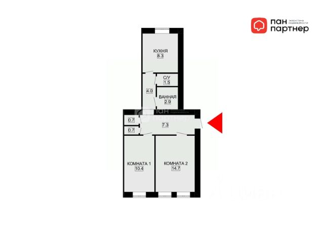 Квартира просторная : прихожая имеет прямоугольную форму,S-10,26,что позволяет создать полноценную "входную" зону. Из прихожей попадаем в кухню,сан.узел,ванну и большой,светлый зал. Все помещения имеют отдельных вход.Кухня площадью - 13,58 имеет квадратную форму, что придает ей статус кухни-столовой на 2 окна.На данный момент кухня разделена временной перегородкой ( в связи с необходимостью доп.комнаты- S-приблизительно 7 м.кв.).К залу прямоугольной формы, на 2 окна, площадью -22.54 м.кв.примыкает "маленькая" комната площадью -17,15,в которую можно попасть из ванны,что делает ее при желании "изолированной" от зала.