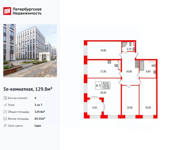 Продаются 4-комнатные апартаменты в сданном доме (Парфёновская, 6к1 (Promenade, корпус 5)), срок сдачи: III-кв. 2022, общей площадью 127.1 кв.м., на 4 этаже. Жилой комплекс Promenade - новый проект в сегменте "Аквилон Business" в центре Санкт-Петербурга, где воплотилось идеальное сочетание характерной для Северной столицы элегантной архитектуры, благородного уюта дворов "старого Парижа", высокотехнологичных конструктивных решений и современных "умных" систем для дома.Жилой дом строится в статусном Адмиралтейском районе, буквально в минуте ходьбы от метро "Фрунзенская". Рядом - престижный Московский проспект - парадная магистраль Северной столицы и Набережная обводного канала, в получасе ходьбы - парадные Набережные Невы и все знаковые места города-музея Петербурга.В составе комплекса - семь разнообъемных корпусов высотой от 9 до 16 этажей, выполненных в единой архитектурной стилистике, свойственной зданиям исторической части Московского проспекта. Стройность и симметрия неоклассических фасадов разбивается анфиладой сквозных арок, которая организует оригинальное внутреннее пространство жилого комплекса - просторный прогулочный променад с французскими цветниками и уютными местами для отдыха. Архитектура Архитектурный облик ЖК Promenade был разработан петербургскими мастерами студии "ВЕК" Владимиром Горбуновым, Евгением Федоровым и Евгением Русаковым - авторами целого ряда неоклассических зданий в Северной столице.Захватывающая дух высота арочных пролетов, строгая гармония формы и цвета, природная красота натурального камня и сдержанная роскошь декора - отличительные черты комплекса. Характерные для современности большие площади остекления органично переплетены с традиционными элементами фасада. Вертикали стеклянных эркеров складываются в античные колонны с капителью и основанием, а верхняя часть здания визуально облегчена за счет чередования остекленных поверхностей с тонкими пилястрами. Такое решение достойно продолжает диалог эпох и культур, традиционный для СанктПетербурга.