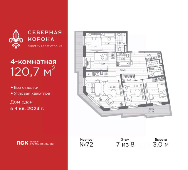 Предлагается к продаже резиденция площадью 251,3 кв.м, расположенная в одном из знаковых проектов Петербурга — "Резиденция на Каменном" и имеет вид на территорию парка "Тихий отдых". Отличительной особенностью резиденции является трехсторонняя планировка и наличие большой террасы. В резиденции возможно спроектировать 4 спальни и просторную кухню-гостиную. Комплекс, возведенный на территории бывшей дачи К-7, состоящий из двух особняков с жилыми резиденциями и клубного дома с сопутствующей инфраструктурой, окружен частным парком в 1 га и имеет собственный выход непосредственно в парк "Тихий отдых". Интерьеры комплекса выдержаны в духе французского неоклассицизма. Роскошный вестибюль украшен интерьерными кессонными трехуровневыми потолками. Отделка стен, пола и ступеней представлена несколькими сортами натурального камня. Поддерживать спокойный ритм жизни и полное ощущение уединения от шумного мегаполиса позволяет собственная внутренняя инфраструктура проекта. В комплексе предусмотрены wellness-центр с плавательным бассейном, тренажерный зал, спа-зона (включающая в себя сауну и хамам), а также уютное лаунж-кафе с камином и открытой летней террасой. Все резиденции имеют высокие потолки 3,6 м и дымоход для размещения дровяного камина. Местоположение Каменный остров зеленый оазис живой природы в центре Петербурга, расположенный всего в нескольких минутах от сердца деловой и культурной жизни мегаполиса. Историческая застройка XIX века, государственные и частные резиденции, парки, скверы, каналы и реки составляют облик этого места. Находящийся здесь комплекс "Резиденция на Каменном" является заповедником тишины, природы и уюта, надежно защищенным от городской суеты тенистыми аллеями парка "Тихий отдых". Близость к деловому центру и в то же время легкая доступность крупных развлекательных комплексов, театров, музеев, исторических доминант Петербурга, ресторанов, яхт-клубов и парков выгодно отличают месторасположение комплекса. Заботливые родители и их дети непременно оценят то, что в ближайшем окружении расположены детские сады и гимназии. Каменный остров имеет статус особо охраняемой природной территории регионального значения. Купить 4-комнатную квартиру в готовой новостройке рядом с метро Петроградская.