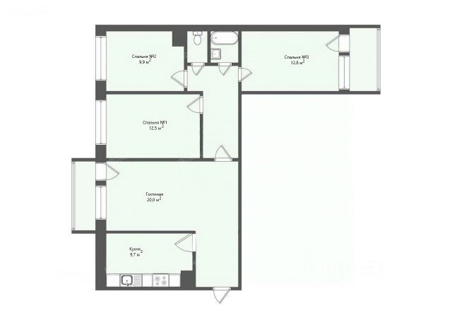 Трехкомнатная квартира в Клубный квартал "Ассамблея" на 4 этаже. Квартира без отделки, после оформления собственности можно делать ремонт. Общая площадь: 89.06 кв.м., жилая: 42.34 кв.м., площадь просторной кухни-столовой: 19.97 кв.м. Квартира - распашонка, без проходных комнат, окна выходят на paзные стороны дома. В квартире одна лоджия, два совмещенных и один раздельный санузел. Высота потолков 3.0 м.