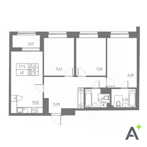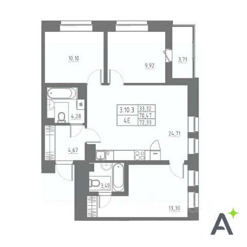 • Возможность выбрать планировку от 72,3 м² м².