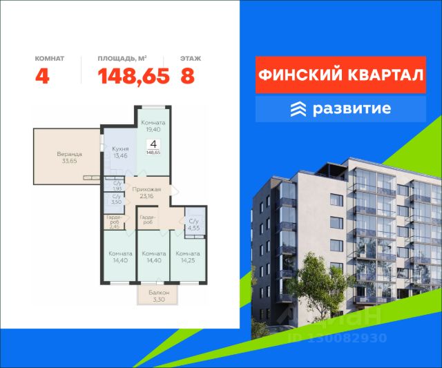 Продается квартира площадью 148.65 кв. м с отделкой white box. Квартира расположена на 8 этаже 8 этажного дома, в жилом комплексе комфорт-класса "Финский Квартал". "Финский квартал" - это уникальный проект комфорт-класса для тех, кто хотел бы жить на природе, но при этом находиться вблизи Северной столицы. Расположенный в окружении одного из самых крупных парков Ленобласти - Лахтинского, проект предлагает своим жителям доступную инфраструктуру, комплексное благоустройство территории, 6 секций переменной этажности с современной архитектурой, которая гармонично дополнит район и будет радовать проживающих еще много лет. Найдите свою идеальную квартиру в ЖК "Финский Квартал"! Расположение Пешком: - 5 мин. до детского сада и супермаркета; - 8 мин. до остановки "Зеленая улица"; - 10 мин. до лесопарковой зоны. На автомобиле: - 3 мин. до Приозерского шоссе; - 10 мин. до Выборгского шоссе; - 12 мин. до КАД; - 30 мин. до ст. метро "Проспект Просвещения". Благоустройство - большой яркий двор с ландшафтным дизайном; - живая изгородь, кустарники и хвойники; - умное зонирование тихих и активных площадок; - сквер для прогулок и отдыха; - изумрудные лужайки для пикников; - дорожки для пешеходов и велосипедистов; - большие игровые площадки; - мягкое покрытие для безопасности детей; - тренажеры, турники и веревочные комплексы; - пространство только для пешеходов - без машин; - наземная парковка за пределами двора; - специальные площадки для выгула питомцев; - светлые дизайнерские холлы; - светопрозрачное остекление и большие окна; - декоративная подсветка парадных; - колясочные помещения для комфорта родителей; - места для хранения велосипедов и самокатов. Окружение - свежий воздух: парк усадьбы "Осиновая Роща", Лахтинский парк, лесопарк "Курортный", Левашовский заказник, Ново-Кавголовский лесопарк; - водные объекты: Сестрорецкий Разлив, пляжи у Тохколодского и Большого озер, залив Сярюнлахти; - инфраструктура: 2 детских сада, школа, кафе, продуктовый супермаркет, больница; - для крупных покупок: ТРЦ "Китай-Город", "Мега-Парнас"", "Гранд Каньон"; - активный отдых: горнолыжные комплексы "Охта-Парк" и "Токсово", конный клуб "Осиновая Роща", ФОК "Норус". Продам 4-комнатную квартиру в новостройке рядом с метро Удельная.