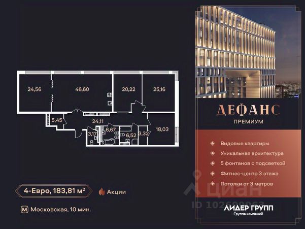 • ✅ Объект наибольшей площади: 183,9 м² в округе Гагаринское в Санкт-Петербурге