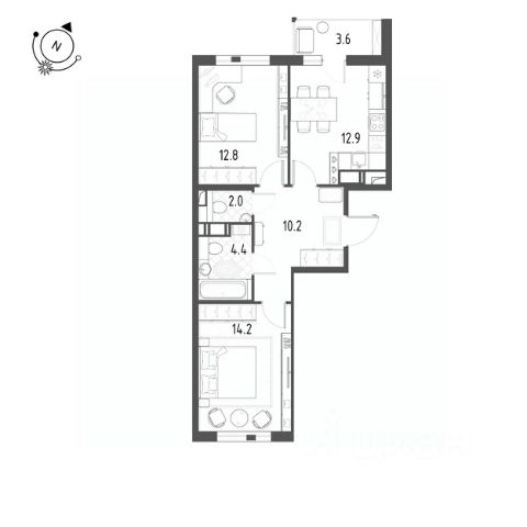 Если покупать у застройщика, цена подобной 2к квартиры, при 100% оплате составит 20 700 000 руб