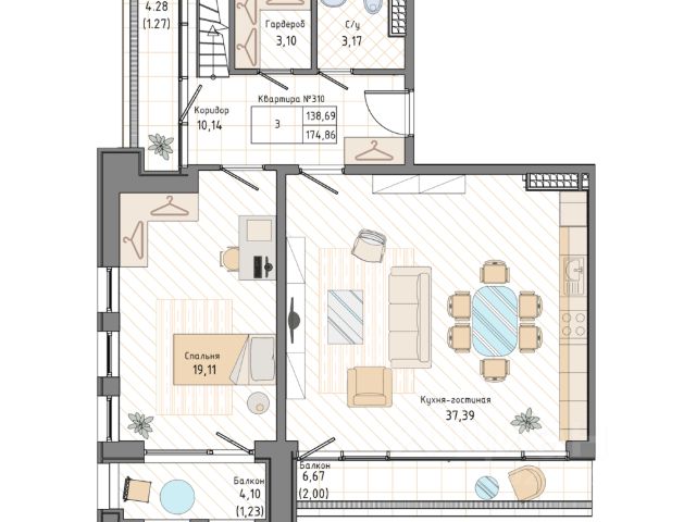 Идеальная, 4-х комн. квартира для семьи с 2 детьми, в историческом "Доходном доме П. Н. Пчёлкина" 1910 г.п. Великолепная, выверенная до сантиметра, планировка: зона столовой и кухни, 3 изолированные спальни, кабинет, 2 с/у, балкон.