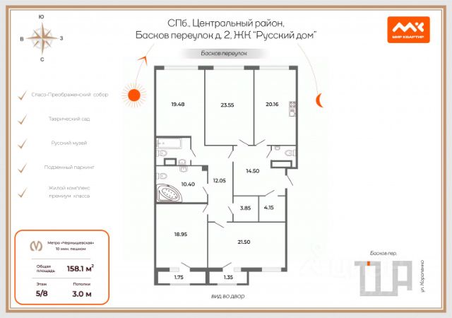 Продаётся 4-комнатная квартира в сданном доме (Воскресенская, 32), срок сдачи: IV-кв. 2022, общей площадью 246.07 кв.м., на 7 этаже. Расположение, транспортная доступность Клубный дом "Приоритет" строится в самом сердце северной столицы, в окружении исторического наследия Санкт-Петербурга, недалеко от Летнего и Таврического садов, Русского музея, Эрмитажа, Исаакиевского собора и других памятников культуры. Из окон открывается живописный вид на Неву и центр города. Рядом проходят Воскресенская набережная и Литейный проспект, обеспечивающие отличную транспортную доступность нового жилого комплекса. Рядом с "Приоритетом" находятся остановки троллейбусов, автобусов, маршрутных такси. Дорога до ближайшей станции метро "Чернышевская" не займет более десяти минут. Инфраструктура Дом расположен в историческом центре, в непосредственной близости от деловых кварталов, и все необходимое для комфортной жизни в мегаполисе расположено буквально в двух шагах от ЖК. Рядом с домом находятся супермаркеты "Дикси", SPAR, магазины "Продукты", "Семишагофф" и многие другие. В округе большой выбор кафе и ресторанов. В непосредственной близости от клубного дома открыты ресторан с банкетным залом "Зевс", кафе S Coffee, ресторан La Mia Firenze, суши-бар "Токио Сити", паб-ресторан "Шерлок", бар Beer House. Поблизости есть отделения крупных банков, аптеки, почта, салоны красоты, фитнес-клубы. Рядом с ЖК находятся стоматологическая поликлиника, частная стоматология PerfectSmile, центр нетрадиционной медицины "Тибет", медицинский центр "Профессор", косметологическая клиника Total Charm. В шаговой доступности от дома расположены кинотеатр "Кино Хауз", театр "Этно", "Смешной театрик", Музей-квартира Иосифа Бродского. В непосредственной близости от жилого комплекса есть несколько детских садиков и средних школ, в том числе лицей 239. Неподалеку расположены СПбГУ, Военная академия материально-технического обеспечения имени Хрулева, Артиллерийская академия и другие учебные заведения. Надежность застройщика Проектом занимается компания "Еврострой", основанная в 1996 году на базе строительного треста "ГлавЛенинградСтроя". В результате удалось объединить лучшие традиции советского градостроительства с новейшими разработками в сфере недвижимости. "Еврострой" - это команда высококлассных профессионалов, которые выполняют полный цикл работ: от создания проекта и выбора участка до ввода здания в эксплуатацию. В копилке "Евростроя" жилые комплексы "Олимпийская деревня", "Привилегия" и др. ЖК "Приоритет" станет новым шагом для компании: здесь специалисты "Евростроя" совместят приватность клубного дома и многофункциональность крупного жилого комплекса. Учитывая репутацию застройщика, риски потенциальных покупателей оцениваются как незначительные. Прибрести квартиру в клубном доме "Приоритет" можно с привлечением ипотечных средств от СМП Банка и банка "Санкт-Петербург". Архитектура "Приоритет" - это клубный дом, рассчитанный всего на 40 квартир. В здании семь этажей. Строител