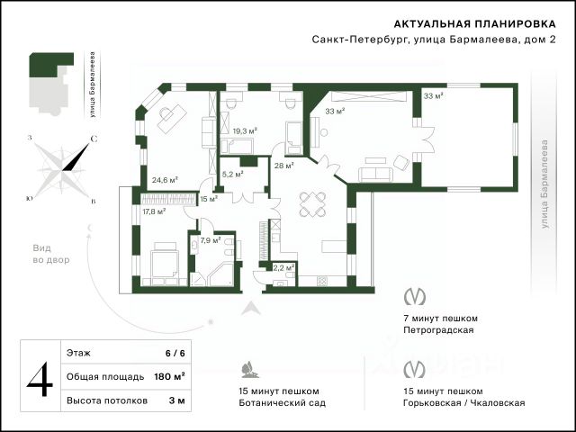 В историческом центре с особой атмосферой Петроградской стороны представлена 4-х комнатная квартира на 7 этаже общей площадью 128.88 кв.м. В корпусе КЛАССИК (KLASSIK) представлены уникальные квартиры для ценителей формата премиум. Пространство вокруг дома вариативно и открывает возможности для отдыха всей семьей на природе. В корпусе расположена зеленая гостиная - полуприватная зона на 2-4 человека с деревянными креслами и диваном, а также детская площадка, интегрированная в сосны. Мультиформатный AVANT соединил вайб Петроградской стороны, индустриальный колорит и уникальную историю локации, органическую архитектуру и множество форматов жилой, коммерческой, сервисной, развлекательной и социальной инфраструктуры, сократив высоту и объем застройки в пользу природных зон, променадов и частного парка. Элитный жилой комплекс располагается в окружении самых престижных заведений и ключевых транспортных артерий Петербурга. AVANT придется по душе тому, кто имеет внутреннюю силу и свободу от стереотипов. Главным общественным пространством и инфраструктурной артерией квартала станет пешеходный променад протяженностью 200 метров для отдыха в привычном для каждого формате. Здесь кафе, рестораны и бутики, фитнес-центр и детские площадки чередуются с уединенными зонами отдыха, окруженными зеленью. Уникальные форматы жилья созданы на основе конструктивных особенностей исторического здания фабрики. Особенности классического лофта задают вариативность форматов: - Индустриальный шик с толщиной стен до 1 метра; - Панорамные окна; - Многоуровневые пространства; - Воздушные антресольные этажи. Такого в Петербурге еще нет. В новом проекте ААG на Пионерской новые смыслы, новые возможности, смелые решения. AVANТ - вaша вcеленная для жизни, отдыха и paбoты. - Семейная ипотека 4,3% на весь период кредитования - Траншевая ипотека с платежом 1503 рублей в месяц до ввода в эксплуатацию - Программы рассрочки 0% - Эксклюзивная опция - отделка WHITE BOX.