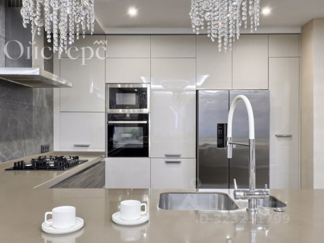- кухня-гостиная, место сбора всей семьи и гостей, площадью 42.1. м. кв. Кухня полностью оборудована необходимой техникой, гарнитур выполнен из массива дерева, который прослужит еще очень долго. Гостиная, правильной прямоугольной формы, имеет выход на лоджию 5.5. м. кв.