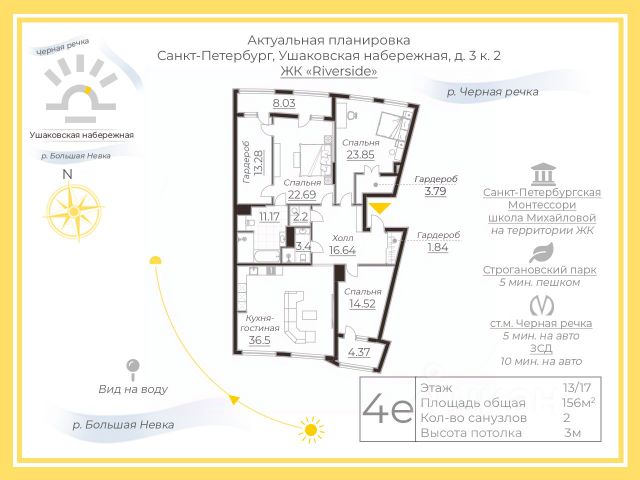 Арт. 123930354 Представляем Вашему вниманию потрясающую квартиру с дизайнерским ремонтом и умопомрачительным видом на воду и панораму городу. Квартира общей площадью (с учетом лоджий) 162 метра с высокими трехметровыми потолками и большими окнами находится на высоком 13 этаже и выходит на 2 стороны: в ухоженный двор с фонтаном и на излучину Невы. С лоджии можно любоваться вечерним солнцем и салютами. В квартире только что закончен ПРЕМИАЛЬНЫЙ ремонт по эксклюзивному дизайн проекту. В отделке использованы дорогостоящие материалы и освещение элитных европейских брендов: штукатурка Marco Polo Luxury, двери Dolce Porto, люстры Bezhko. Квартира укомплектована новой мебелью, изготовленной на заказ и техникой техникой премиум-класса. В шикарных ванных комнатах сантехника Villeroy&Boch, стиральная и сушильная машины Miele. В квартире смонтирован теплый пол, установлена НОВЕЙШАЯ СИСТЕМА КОНДИЦИОНИРОВАНИЯ Mitsubishi. Просторная кухня-гостиная будто сошла со страниц журнала по дизайну интерьера. Сделано грамотное зонирование обеденной зоны и зоны отдыха. Любую хозяйку приятно удивят размеры и качество кухни с выполненной из камня рабочей поверхностью и системами хранения. Вся техника на кухне брендов Miele, electrolux, Liebherr. Поистине функциональная планировка: продумано все для мелочей для комфортной жизни дружной семьи. Отдельного внимания заслуживает стильная мастер-спальня с одиннадцатиметровой ванной комнатой и гардеробной с окном!!!! Детская в пудровых тонах оборудована собственной гардеробной. Два окна обеспечивают обилие света и простор. Также в квартире есть кабинет с лоджией, при желании его можно оборудовать под спальню или комнату для гостей. ЖК бизнес-класса Riverside обладает закрытой от посторонних территорией с чудесными детскими площадками и местами для отдыха, реализована концепция "двор без машин". Управляющая компания оперативно решает все вопрос. На территории комплекса установлено видеонаблюдение, без страха можно отпустить гулять ребенка. В подземный паркинг можно спуститься с этажа. ЕСТЬ МЕСТО В ПАРКИНГЕ ЗА ДОПОЛНИТЕЛЬНУЮ СТОИМОСТЬ. Удачное расположение позволяет быстро добраться до центра города или Крестовского острова с его парками. Документы готовы к сделке, без обременений, подходит под ипотеку.