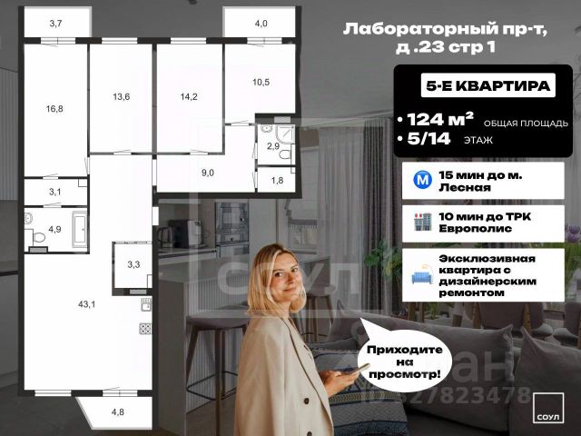 Продаётся 4к.кв. в ЖК БелАрт от застройщика Группа компаний "РСТИ" (Росстройинвест). Квартира находится в 23 этажном доме, в Корпус 4 на 13 этаже. Общая площадь квартиры 113,10 кв.м. ЖК "БелАрт" — современный квартал комфорт-класса, расположенный в Калининском районе Санкт-Петербурга, в шаговой доступности от станции метро "Лесная". В состав проекта входят пять корпусов переменной этажности. Уникальная архитектура, выверенная геометрия фасадов, грамотное зонирование общественных пространств и придомовой территории, продуманные планировки квартир. Особое внимание уделено обустройству мест общего пользования: в парадных появятся зоны для отдыха и помещения для хранения велосипедов и колясок. В закрытых благоустроенных дворах будут обустроены детские площадки, зоны для отдыха. Украшением квартала станет променад протяженностью почти 300 метров с фруктовым садом. На первых этажах домов жилого комплекса "БелАрт" откроются продуктовые магазины, пекарни, салоны красоты. В стилобатной части домов спроектированы подземные паркинги. ЖК строится на Полюстровском проспекте. До станции метро "Лесная" 1,4 км, а до Финляндского вокзала 4,5 км. Ближайшие остановки общественного транспорта всего в 50 метрах от комплекса. Выезд на КАД находится в 7,5 км, на 3СД в 9,5 км, а до центра города всего 9 км. "БелАрт" расположен в непосредственной близости от крупных транспортных магистралей: Полюстровского проспекта, проспекта Маршала Блюхера, Большого Сампсониевского проспекта, Кантемировской улицы, Ушаковской и Выборгской набережных. Калининский район Санкт-Петербурга — развитый район с налаженной инфраструктурой. На расстоянии 12 км от квартала работают более 10 детских садов и 7 школ. Близость к метро и центру делает доступными лучшие учебные заведения. В окружении комплекса уже работают различные магазины, медицинские клиники и многое другое. Рядом со станцией метро "Лесная" расположен торгово-развлекательный комплекс "Европолис".