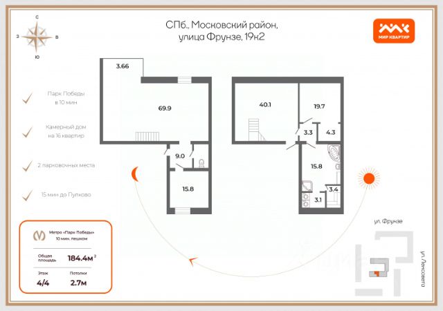 Арт. 119142921 Малоэтажный клубный дом на 16 квартир 2001 года постройки! Московский район один из самых престижных и зеленых районов Санкт-Петербурга. Парк Победы, парк Авиаторов, многочисленные скверы и утопающие в зелени дворы. Единый архитектурный облик района и качество зданий постройки середины ХХ века всегда привлекали горожан. Дом расположен в глубине квартала, в отдалении от динамичного Московского проспекта. Закрытая придомовая территория с детской площадкой, в доме консьерж и видеонаблюдение. Во дворе есть два закрепленных за квартирой парковочных места. Общая площадь квартиры 184 кв.м. На первом уровне расположена кухня гостиная (70 кв.м), спальня и санузел. На втором уровне (мансарда) две спальни и большая ванная комната. Планировка узаконена. Прямая продажа, один собственник более 10 лет, обременений нет. Документы полностью готовы к сделке! Приглашаю на просмотр! Предлагаем ПРЕМИАЛЬНОЕ обслуживание для требовательных клиентов. Оперативно организуем просмотр, предоставим полную информацию по объекту. 20 лет работы с требовательными клиентами подготовили нас к решению ВАШИХ сложных задач. Будем рады знакомству! Ул. Рубинштейна, д.8. Купить 4-комнатную квартиру с евроремонтом на улице Фрунзе в Санкт-Петербурге.