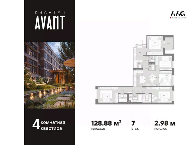 В историческом центре с особой атмосферой Петроградской стороны представлена 4-х комнатная квартира на 7 этаже общей площадью 128.88 кв.м. В корпусе КЛАССИК (KLASSIK) представлены уникальные квартиры для ценителей формата премиум. Пространство вокруг дома вариативно и открывает возможности для отдыха всей семьей на природе. В корпусе расположена зеленая гостиная - полуприватная зона на 2-4 человека с деревянными креслами и диваном, а также детская площадка, интегрированная в сосны. Мультиформатный AVANT соединил вайб Петроградской стороны, индустриальный колорит и уникальную историю локации, органическую архитектуру и множество форматов жилой, коммерческой, сервисной, развлекательной и социальной инфраструктуры, сократив высоту и объем застройки в пользу природных зон, променадов и частного парка. Элитный жилой комплекс располагается в окружении самых престижных заведений и ключевых транспортных артерий Петербурга. AVANT придется по душе тому, кто имеет внутреннюю силу и свободу от стереотипов. Главным общественным пространством и инфраструктурной артерией квартала станет пешеходный променад протяженностью 200 метров для отдыха в привычном для каждого формате. Здесь кафе, рестораны и бутики, фитнес-центр и детские площадки чередуются с уединенными зонами отдыха, окруженными зеленью. Уникальные форматы жилья созданы на основе конструктивных особенностей исторического здания фабрики. Особенности классического лофта задают вариативность форматов: - Индустриальный шик с толщиной стен до 1 метра; - Панорамные окна; - Многоуровневые пространства; - Воздушные антресольные этажи. Такого в Петербурге еще нет. В новом проекте ААG на Пионерской новые смыслы, новые возможности, смелые решения. AVANТ - вaша вcеленная для жизни, отдыха и paбoты. Продается 4-комнатная квартира в округе Чкаловское в Санкт-Петербурге.