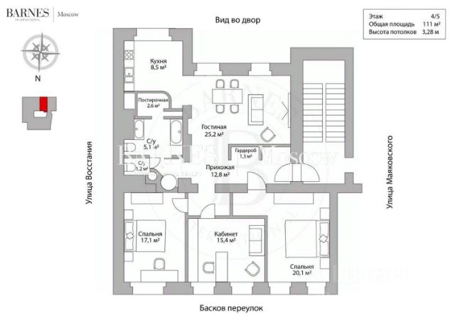 • ✓ В базе объявлений Циан 5 4-комнатных квартир в переулке Басков в Санкт-Петербурге.