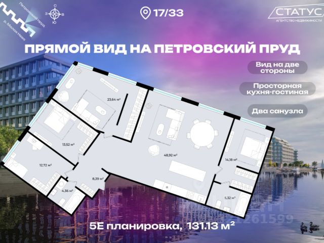 Продаётся 4-комнатная квартира в ЖК "Нева Резиденс" на 4 этаже. Общая площадь составляет 115.90 кв. м. Квартира без отделки. Жилой комплекс "Нева Резиденс" располагается по адресу Санкт-Петербург, Петроградский. Нева Резиденс - премиальный проект в центре Санкт-Петербурга, расположен в живописной локации с европейской атмосферой и собственной благоустроенной набережной. Расположение: • 1 минута пешком до Петровского пруда и сквера; • 3 мин на авто до Крестовского острова; • 8 мин на авто до станции метро "Чкаловская"; • 8 мин на авто до станции метро "Крестовский остров"; • 9 мин на авто до ЗСД; • 10 мин на авто до Стрелки В.О. и исторического центра города; • 24 мин на авто до Невского проспекта. Внутренняя территория комплекса полностью пешеходная, уютное пространство для отдыха детей и взрослых - большое внимание уделено ландшафтному дизайну, проработке пеших маршрутов, оформлению тематических зон. Местом прогулок жителей комплекса станет благоустроенная набережная, исполненная по уникальному проекту с озеленением и устройством малых архитектурных форм. Дизайн дворов предполагает создание искусственных холмов, высадку кустарников, цветников, крупномерных деревьев. Рядом расположился живописный Петровский парк с прудом. В нескольких минутах езды Петроградская сторона и исторический центр, через мост - Крестовский остров с огромной парковой зоной и аттракционами. Из подземного паркинга на лифте можно подняться на нужный этаж прямо к дверям квартиры. Преимущества: • Широкие окна, от 3м; • Фильтры тонкой очистки воды; • Система "Умный дом"; • Сквозные парадные с выходом во двор, безбарьерная среда; • 5-ти ступенчатая система очистки воды; • Повышенная звукоизоляция между квартирами; • Балконы и лоджии с теплым остеклением. Успейте приобрести квартиру на выгодных условиях! Чтобы узнать подробности, обращайтесь за консультацией по телефону. Продам 4-комнатную квартиру на улице Ремесленная в Санкт-Петербурге.