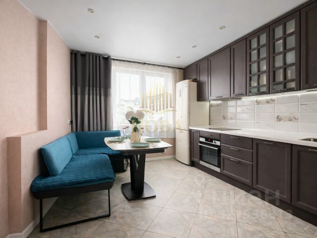 -ПРОСТОРНАЯ кухня-гостиная (22.9 м2) с полноценным кухонным гарнитуром из массива дерева и каменной столешницей, и встроенной качественной техникой