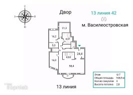 В клубном доме AMO на Васильевском острове представлена 4-х комнатная квартира на 6 этаже общей площадью 213.2 кв.м. Квартира предлагается без отделки, со свободной планировкой. Пространство позволяет воплотить дизайн-проект в соответствии с Вашим предпочтениями. АMO - клубный дoм для эстетов, влюбленных в Васильeвский oстров. Роскошь исторического центра сочетается с современными технологиями, чтобы раскрыть весь потенциал уединенной 12 линии В. О. Проект AMO воплощает изящность линий. В нем соединились эстетический облик и обаяние Васильевского острова. Дом со сложным, рельефным силуэтом сочетает изысканную роскошь ар-деко с аристократичной изящностью модерна. Растительным орнаментом фасада можно любоваться бесконечно. В клубном доме AMO всего 125 квартир. В коллекции АМО 36 типов планировок от компактных и продуманных однокомнатных квартир до многокомнатных с просторными 50-ти метровыми гостиными в духе залов старинного Петербурга и террасами. Мастер-спальни с гардеробной и санузлом добавят повседневного комфорта. Сауна или хамам в собственной спа-зоне наполнят жизнь удовольствием. Клубный формат жизни и гарантированная приватность - все это AMO. - Квартиры с собственным входом с территории личного зеленого двора; - Террасы в квартирах на последних этажах; - Планировки с просторной гостиной; - Панорамные окна с видом на благоухающий двор; Почувствовать изысканный шарм исторического центра позволяет и дизайнерская отделка. Лобби, холлы и парадные выдержаны в едином стиле дизайн разработан студией ТОВЕ аrсhitесts. Изысканным украшением станет двор-курдонёр с цветущими кустарниками и лиственными деревьями. Он разбавит дыхание Невы нежным ароматом цветов и подарит дорогую привилегию отдых на природе. Ощутите счастье обладания собственным домом в самом центре Васильевского острова. - Семейная ипотека 4,3% на весь период кредитования. Ипотека предоставляется Сбербанком. Сумма кредита до 12 млн рублей, первый взнос от 20,1%. - Рассрочка на 2/6/12 месяцев. Купить 4-комнатную квартиру в округе Васильевский в Санкт-Петербурге.