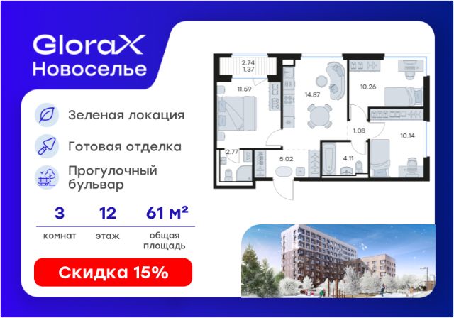 Продаётся 4-комнатная квартира 235, общей площадью 114.61 кв.м., на 12. Дом комфорт-класса, 12 этажей, в окружении леса и малоэтажной застройки. Проект с умным домом. Передача квартир в феврале 2025г. РАСПОЛОЖЕНИЕ И БЛАГОУСТРОЙСТВО Расположение ЖК "ЛесART" порадует любителей чистого воздуха — рядом находятся лесопитомник и Шунгеровский заказник. Особенность комплекса это его ART дворы, которые оформлены по мотивам произведений Василия Кандинского, Пита Мондриана и Пабло Пикассо. Дворы закрыты от машин, что обеспечивает безопасность детей и взрослых. Для семей с детьми особенно удобно наличие детского сада и школы прямо во дворе комплекса. На первом этаже расположены магазины, маркетплейсы, кофейни и всё что необходимо для повседневной жизни. Холлы - это продуманные пространства с колясочными, сквозными проходами и приятной музыкой в лифтах. СИСТЕМА УМНОГО ДОМА В КАЖДОЙ КВАРТИРЕ - Комфорт. Управление освещением, мультимедиа и климат-контролем. - Безопасность. Видеонаблюдение и мониторинг систем безопасности. - Экономия. Контроль систем и оптимизация энергопотребления. - Удобство. Управление с помощью мобильного телефона. ГК "ЕДИНО" Входит в тройку компаний-лидеров региона по потребительским качествам жилых комплексов, объемам ввода жилья и объемам текущего строительства. В цифрах: - 23 года на рынке - Более 50 построенных домов - 60 000+ счастливых обладателей квартир ПРЕИМУЩЕСТВА ПОКУПКИ В ЖК "ЛЕСART": - Сниженная ставка по семейной ипотеке от 5,5%; - Рассрочка без переплаты; - Обмен старой квартиры на новую без комиссии; - Возможность использовать материнский капитал; ЗАПИСЫВАЙТЕ НА ПРОСМОТР! Мы ждем Вас в нашем уютном шоуруме. Вы увидите отделку, дизайнерские решения и познакомитесь со сценариями Умного дома! Такси до офиса продаж и обратно БЕСПЛАТНО!