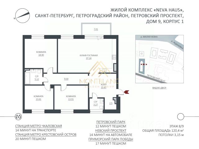 NEVA HAUS — современный жилой комплекс, расположенный на берегу реки Малой Невки. Большая часть комплекса была введена в эксплуатацию в 2022 году. Продается просторная двухсторонняя квартира площадью 156 кв. м с высотой потолков 3 м. Квартира расположена в привилегированном корпусе 3 на первом этаже. Всего в здании 9 этажей. Видовая перспектива со стороны кухни-гостиной открывается на восток и выходит на прилегающие зелёные, ухоженные придомовые территории с высокими деревьями, детскими площадками, а также на соседствующее с домом историческое малоэтажное здание цвета пыльной розы. Противоположная часть квартиры ориентирована на закрытый ухоженный внутренний двор с современными зелёными посадками, вечерней подсветкой и аккуратными тропинками. Квартира очень тихая, так как её окна не выходят на оживленные дороги или магистрали. Здание третьего корпуса отделено от Петровского проспекта огромной территорией, на которой расположено современное здание школы с впечатляющими спортивными площадками и бассейнами. Планировка квартиры включает четыре отдельные спальни с возможностью выделения шести комнат. Прилегающая к кухне комната может быть использована для расширения кухонного пространства и создания идеальной кухни-гостиной с функциональными зонами. Квартира очень светлая благодаря восьми окнам, пропускающим большое количество естественного света. Планировка предусматривает три отдельные ванные комнаты, одна из которых с окном, что подчеркивает высокий статус объекта. Входная группа выполнена из дорогих натуральных материалов и оснащена колясочной. Лифт спускается в подземный паркинг. NEVA HAUS — единственный жилой комплекс, который напрямую соседствует с историческим парком ветеранов сцены им. Савиной. Это соседство с проектами Петровского острова, где на первых этажах расположены коммерческие объекты, создаёт комфортную инфраструктуру для жителей комплекса. Прямо рядом — магазины, аптеки и кафе, но эти сервисы находятся не в вашем доме, а в шаговой доступности от него. Петровский остров стремительно приобретает статус современного элитного микрорайона, где активно развивается социальная инфраструктура: новые детские сады, салоны красоты, спортивные студии. Этот район особенно подойдёт тем, кто ценит водные виды активностей: Санкт-Петербургский речной яхт-клуб и Luxury Marine с услугами аренды яхт и катеров расположены по соседству с NEVA HAUS. Кроме того, в пределах пешей доступности находятся футбольная школа ФК "Балтика" и школа художественной гимнастики "Жемчужина". Важным преимуществом является удобная транспортная доступность — рядом мосты, соединяющие Васильевский, Петроградский и Крестовский острова. На Петровском проспекте развита система общественного транспорта, а ближайшие станции метро — "Крестовский остров" и "Спортивная".