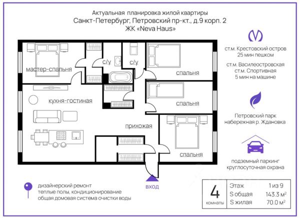 • ✓ В базе Циан 11 4-комнатных квартир возле школы рядом с метро Крестовский остров