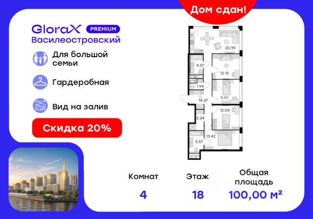Продается 4-комнатная квартира в ЖК "Морская набережная" на 3 этаже. Общая площадь составляет 114.60 кв. м. Квартира без отделки. Жилой комплекс "Морская набережная" располагается по адресу Санкт-Петербург, Василеостровский. Жилой комплекс "Морская набережная" - проект бизнес-класса на Васильевском острове, расположенный на берегу Финского залива. Этот район гордится большим количеством культурно-исторических объектов, активно участвует в развитии современной культуры. Расположение: • 3 минуты до ЗСД; • 10 минут на автомобиле до станции метро "Приморская"; • 18 минут на автомобиле до стрелки В.О. и исторического центра города. "Морская набережная" - это экологически благополучное место с чистым грунтом и свежим воздухом. Прямо перед домом - благоустроенный сосновый парк. Хвойный массив поднимется вместе со строящимися домами - здесь уже высажено более 1 300 деревьев двухметровой высоты. Выйдя из дома, можно отправиться на прогулку в парк или пройти через двор к набережной у залива. Проект набережной выполняется в духе европейского ландшафтного дизайна: высаживаются лиственные деревья и сосны, поднимается уровень дерна, газоны украшаются злаками и кустарником. Преимущества: • Высокие потолки и широкие окна; • Подземный паркинг с лифтом до Вашего этажа; • Огороженный внутренний двор без машин; • Система "Умный дом" и видеонаблюдение; • Школа и детские сады на внутренней территории ЖК; • Инфраструктура шаговой доступности на первых этажах корпусов; • Продуманная территория для отдыха, игр и спорта. Успейте приобрести квартиру на выгодных условиях! Чтобы узнать подробности, обращайтесь за консультацией по телефону.