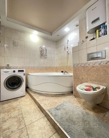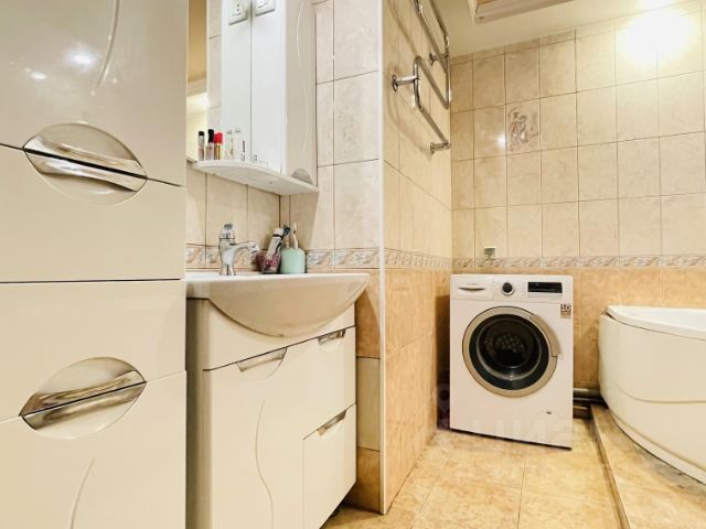 2 санузла: 2.1 и 4.5 кв.м (в одном -душевая кабина , раковина, унитаз, в другом -ванна с гидромассажем, раковина и унитаз, стиральная машина.