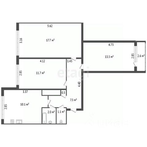 Изолированные комнаты 17,5 и 16,5 м² — отличный вариант для семьи или тех, кто хочет отдельное рабочее пространство.