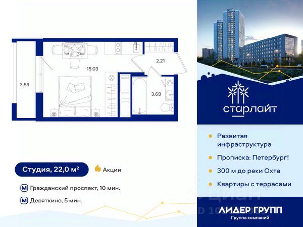 Внимание! Продается 2к кв. в новом современном ЖК "Цветной Гopод". Общая площадь составляет 52,6 кв. м, Две изолированные комнаты (15,1 кв. м и 12,1 кв. м), плюс просторная кухня (11,2 кв. м)!!! Светлая и очень уютная! Идеальная для молодой семьи!Полная инфраструктура: четыре детских сада, две новых школы (достраивается ещё одна), отличная транспортная доступность близость к основным магистралям и метро (ст м Академическая и ст м Гражданский Проспект). Удобно расположены детская поликлиника и взрослая. Так же рядом магазины, аптеки, кафе, в шаговой доступности от дома есть остановка общественного транспорта. Плюс, все соседи завершили ремонтные работы - в доме тихо. В квартире два собственника-супруги, согласие на сделку есть. Плюс, в квартире никто не прописан. Плюс, есть выгодная возможность выкупа ставки по ипотеке! Плюс в стоимость входит кухня со всей техникой! Звоните - отвечаем на все вопросы быстро! Покупатели со всеми видами оплаты рассматриваются, так как успешно работаем со всеми видами сложносоставных сделок.