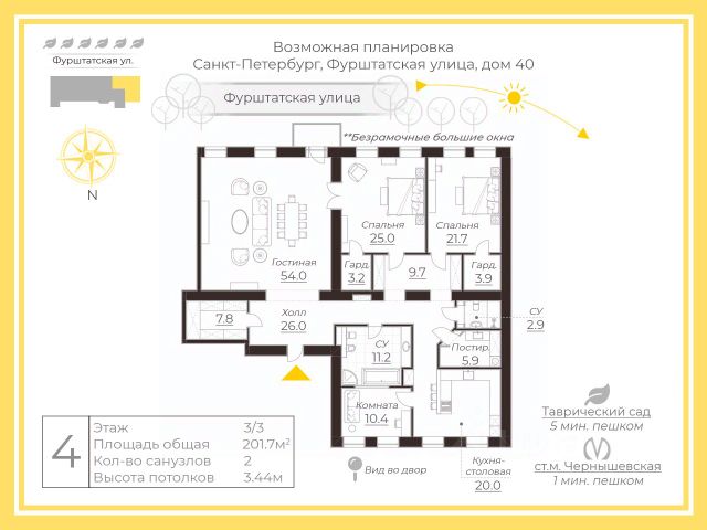 Арт. 124700693 В продаже редкий вариант в Особняке Е. И. Гиппиус. Балкон, вид на пешеходную аллею, много безрамочных окон, высокие потолки, парадный вход достоинств много! Квартира состоит из: гостиная с выходом на балкон, две спальни с гардеробными, кухня-гостиная, два санузла, хоз.комната, просторная прихожая. Правильная и продуманная планировка. При желании, можно сделать еще одну комнату. Южная сторона света, безрамочные окна, видно много неба, потолки 3.44 метра все то, делает квартиру светлой и просторной. В квартире сделан ремонт, но косметика точно требуется. Установлено два кондиционера, мраморные подоконники, на полу паркетная доска. С балкона открывается потрясающий вид на перспективу Фурштатской улицы. О доме: - Особняк Е. И. Гиппиус, это не доходный дом! -Часть здания пренадлежит Альфа-банку (приятное соседство), вторая часть - наша жилая парадная на 4 квартиры. -Светлый и красивый парадный вход с барской лестницей, две квартиры на этаже. Из парадной есть выход во внутренний двор. -Парковочное место во дворе. -Видеонаблюдение в парадной. -В 2018-2020 году был капитальный ремонт дома. Отреставрировали фасад, заменили электропроводку, заменили стояки заменили систему отопления, ремонт крыши. Парадная локация, где все под рукой. До Таврического сада 5 минут пешком, до метро Чернышевская 1 минута. Рядом есть все, что нужно для комфортной жизни. Правильная цена! Готовы к быстрой сделке! Звоните! Все подробно расскажу и договоримся на просмотр. Продам 4-комнатную квартиру (вторичка) на улице Фурштатская в Санкт-Петербурге.