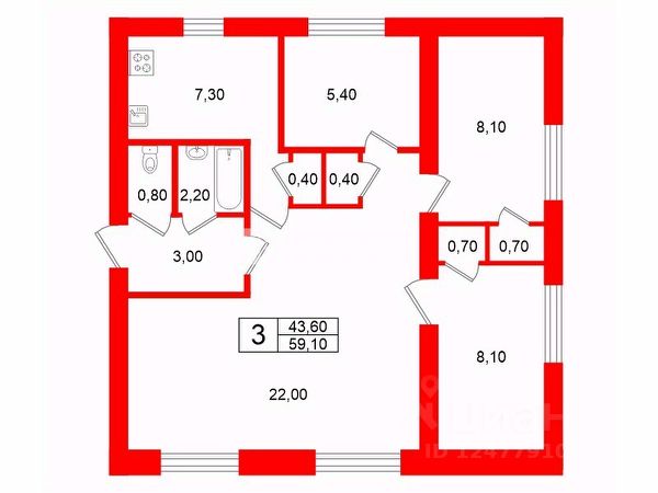 комфортная планировка: - четыре просторные и светлые комнаты размерами 19,6 + 23,8 +