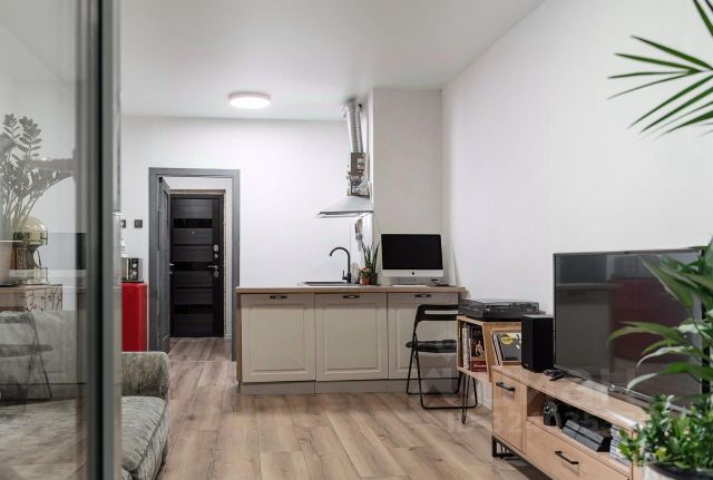 Мебель и техника: кухня, встроенные шкафы, водонагреватель, посудомоечная машина останутся новому владельцу.