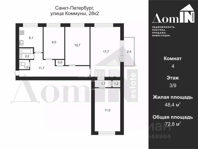 • ✓ В базе Циан 2 4-комнатных квартир.