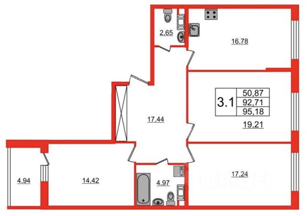 • ✓ В базе Циан 1 4-комнатных квартир в ЖК Квартал бизнес-класса Б15 в Санкт-Петербурге