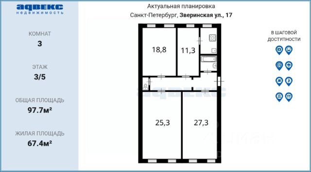 Просторная 5-комнатная квартира в историческом центре Санкт-Петербурга на тихой улице Бармалеева. Дом 1913 года постройки с кирпичными стенами и железобетонными перекрытиями. Капитальный ремонт: 1967 г., замена системы отопления: 2005 г., ремонт крыши: 2020 г. О квартире: • Общая площадь 108.7 м²: свободная планировка с возможностью зонирования. • Высота потолков 3 метра: светло и просторно. • Состояние под ремонт: идеальный вариант для создания дизайна по вашему вкусу. • Сохранился ровный деревянный паркет: готовое основание для реставрации. • Раздельный санузел с ванной и газовой колонкой для независимого горячего водоснабжения. • Неостекленный балкон с приятным видом на зеленый сад, телебашню и крыши Петроградской стороны. • Отличная шумоизоляция: между комнатами и коридором — толстые капитальные стены. • Вместительная система хранения: в коридоре встроены 4 больших стенных шкафа. Их можно оставить или демонтировать, чтобы сделать пространство еще более просторным. О доме, соседях и дворе: • Чистый, светлый подъезд. Соседи тихие и спокойные — в основном пожилые люди и семьи с детьми младшего школьного возраста. • Тихий, зеленый закрытый двор с детской площадкой и скамейками. • Бесплатная парковка во дворе, въезд через ворота с пультом. Расположение и инфраструктура (главное преимущество): • В шаговой доступности метро Петроградская (10 мин) и Чкаловская (12 мин). Остановки общественного транспорта в 2 минутах ходьбы. • Район с развитой инфраструктурой: супермаркет Лента, аптеки в 5 минутах от дома. Есть школы, детские сады и поликлиника. • Окружение для досуга: Театр Миронова, Балтийский дом, Ботанический сад, Зооопарк, Планетарий. Множество ресторанов и кофеен. • До ЦПКиО на Крестовском острове — 10 минут на машине или полчаса на автобусе. Условия продажи: • Прямая продажа от собственников (трое). • Квартира свободна от обременений, все документы в порядке. Продается 5-комнатная квартира элитные на проспекте Чкаловский в Санкт-Петербурге.