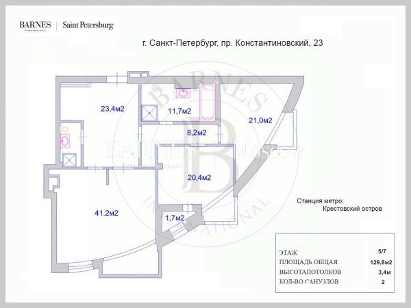 NEVA HAUS — новый уровень жизни в самом сердце Петровского острова. Расположенный на живописном берегу Малой Невки, этот современный жилой комплекс с собственной прогулочной набережной длиной 600 метров — идеальное место для тех, кто ценит комфорт, эстетику и природную тишину. Предлагается уникальная угловая квартира без ремонта, открывающая великолепные виды на воду и зелень Крестовского острова, а также на широкий ухоженный променад между зданиями. Продуманное ландшафтное оформление с яркими акцентами, разнообразными покрытиями и насыщенной растительностью формирует атмосферу уюта и создает живописные панорамы в любое время года. Общая площадь квартиры — 202,8 кв. м, высота потолков — 3 метра, а широкие дубовые окна наполняют помещение светом и ощущением простора. Расположенная в привилегированном корпусе 3 на первом этаже, квартира впечатляет масштабом и возможностями. Изначальная планировка предусматривает пять отдельных комнат, при этом самая большая — 49,6 кв. м — прилегает к кухне и легко трансформируется в просторную гостиную, идеально подходящую для семейного отдыха и объединённого пространства. Окна квартиры ориентированы на север и запад, открывая спокойные виды на воду и природный ландшафт. Это не просто квартира — это статус, долгосрочная ценность и инвестиция в комфорт всей семьи. NEVA HAUS — комплекс с одной из крупнейших внутренних территорий, множеством современных детских площадок и зелёных зон отдыха. Техническое оснащение включает системы очистки и контроля напора воды, места для установки внешних блоков кондиционеров, колясочные, подземный и наземный паркинг с гостевыми зонами. Круглосуточная охрана обеспечивает максимальную безопасность. NEVA HAUS расположен в центральной части Петровского острова, который стал одним из самых привлекательных районов Северной столицы благодаря своему местоположению, современной архитектуре, высоким стандартам строительства и качеству жилья. Единая социальная среда — один из ключевых факторов, влияющих на выбор будущих собственников. Современная эстетика, новая инфраструктура, большое количество зелёных пространств для отдыха, современные детские площадки, разнообразные детские сады, студии и государственные школы — всё это уже создано и работает на благо жителей нового элитного района в центральной части города. Особенностью комплекса NEVA HAUS является его удалённость от Петровского проспекта, живописные виды на Малую Невку, собственная зелёная территория и перспективы на городские доминанты. Жителям доступны не только возможности инфраструктуры самого острова, но и удобства прилегающих районов. Важно отметить, что с сентября 2023 года рядом с комплексом открылся филиал государственной школы 99 в новом здании, специально построенном для этих целей. В школе предусмотрены два бассейна и открытые спортивные площадки. Ближайшие станции метро — "Крестовский остров" и "Спортивная". Для удобства жителей здесь работает регулярный наземный общественный транспорт.