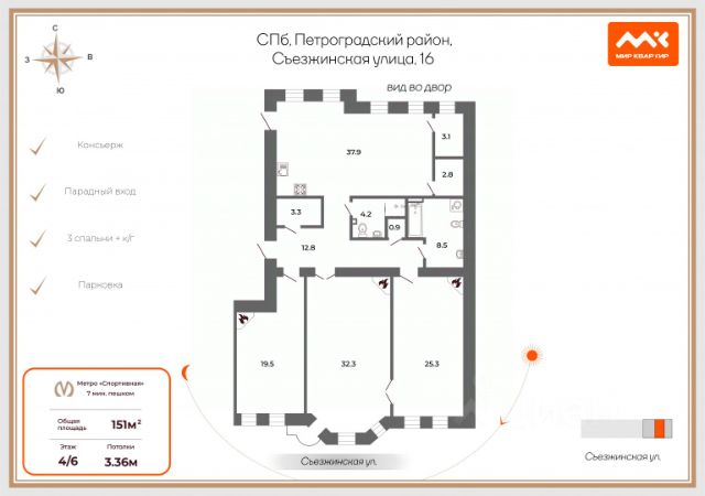 ID: 585004 Продажа уникальной пятикомнатной квартиры в центре Петроградского района Санкт-Петербурга! Эта просторная квартира площадью 202 кв.м расположена на 4 этаже клубного дома, построенного по индивидуальному проекту в 2002 году. В доме всего 9 квартир, что обеспечивает уютную атмосферу и высокий уровень безопасности. Основные характеристики: Локация: Отличное расположение в историческом центре города, всего 10 минут пешком от метро Горьковская. Рядом находятся знаменитые достопримечательности: Петропавловская крепость, Александровский парк, Соборная мечеть и Крейсер Аврора. Планировка: Квартира создана из двух квартир с грамотным зонированием пространства для комфортного проживания большой семьи. Все комнаты расположены далеко друг от друга. В квартире имеются 2 изолированные спальни, кабинет, гостиная с действующим камином из натурального оникса и водопадом, а также кухня-столовая, итальянского производителя, площадью 29,6 м2 укомплектованная техникой MIELE и GAGGENAU. Современные удобства: Два совмещенных санузла, один из которых с окном, оборудован ванной-джакузи и душевой кабиной с системой теплых полов. Также предусмотрены 4 гардероба и отдельная постирочная. Безопасность и комфорт: Квартира находится на закрытой придомовой территории с круглосуточной охраной и видеонаблюдением. В доме работает консьерж, своя управляющая компания и собственная котельная. Парковка: В собственности есть два парковочных места в подземном паркинге (не входят в стоимость квартиры), а также возможность парковки во дворе. Звоните для получения дополнительной информации и организации просмотра! Номер объекта: #1/585004/14501