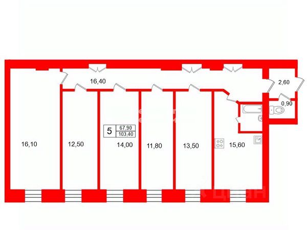 По документам площадь кухни 11,6 кв.м., по факту кухня располагается на 22,2 кв.м, за счет прилегающего помещения.