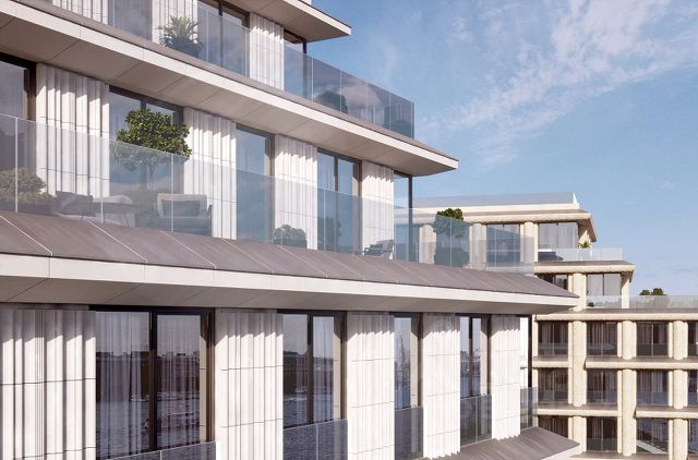 Архитектура комплекса выполнена в духе современных европейских вилл: плавные линии фасадов, облицовка натуральным известняком и спокойная цветовая палитра создают гармонию архитектуры и природного окружения.