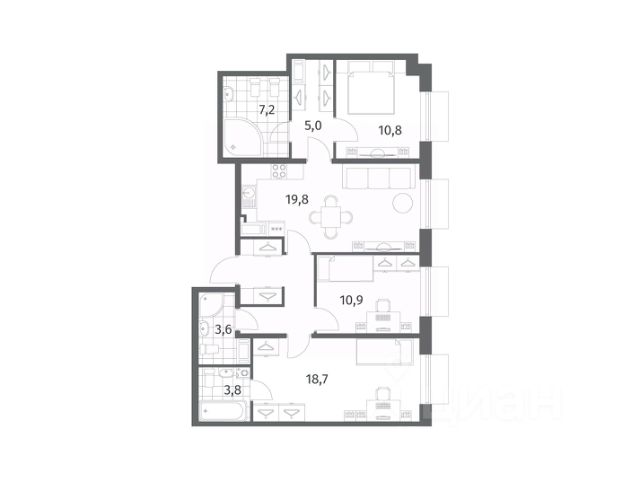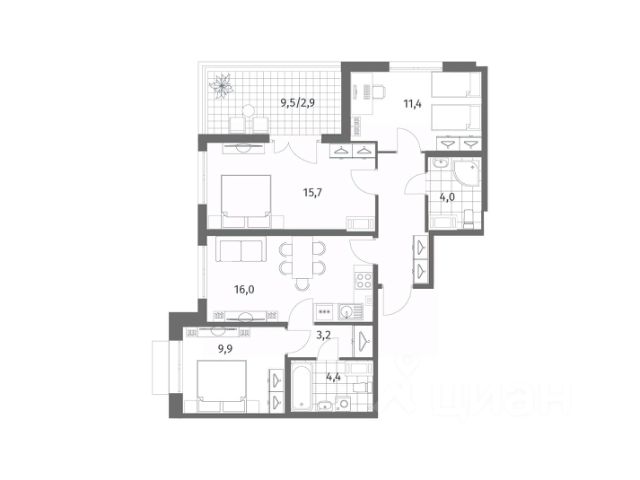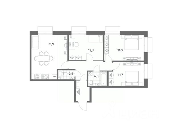 Трехкомнатная квартира от застройщика в ЖК "Галерная гавань" на 11 этаже. Квартира без отделки, новый собственник может сделать ремонт по своему дизайн-проекту. Общая площадь: 98.69 кв.м., жилая: 48.36 кв.м., площадь просторной кухни-столовой: 27.17 кв.м. Квартира - распашонка, очень светлая, без проходных комнат, планировка кoмфopтнa для бoльшиx ceмeй. В квартире один балкон, два совмещенных санузла. Наличие в квартире террасы размером 10.61 кв.м. открывает возможность для создания зон отдыха в кругу семьи и друзей. Высота потолков 3.02 м.