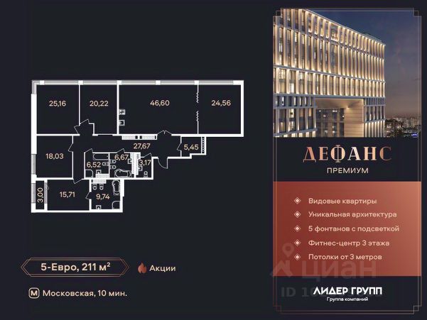 Продаётся 3-комнатная квартира в сданном доме (Московский, 183-185Ак8), срок сдачи: II-кв. 2020, общей площадью 150.6 кв.м., на 4 этаже. Расположение, транспортная доступность