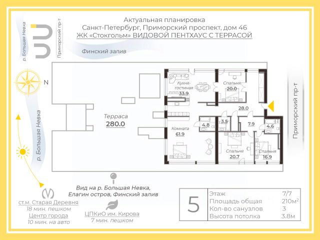 Купить 5-комнатную квартиру с дизайнерским ремонтом в районе Приморский в Санкт-Петербурге (от 75 млн руб.)